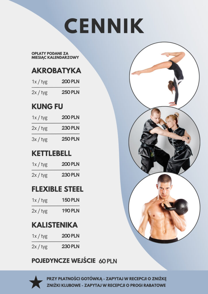 Uwaga! Każdy uczestnik zajęć zobowiązany jest posiadać imienną kartę klubową, na którą nabijane są karnety za treningi i która przyłożona do czytnika bramki automatycznie wpuszcza uczestnika z aktualnym karnetem na teren klubu. Wyrobienie tej karty to jednorazowy koszt 10 PLN. W przypadku zgubienia karty klubowej należy zgłosić się do recepcji i wykupić nową kartę.